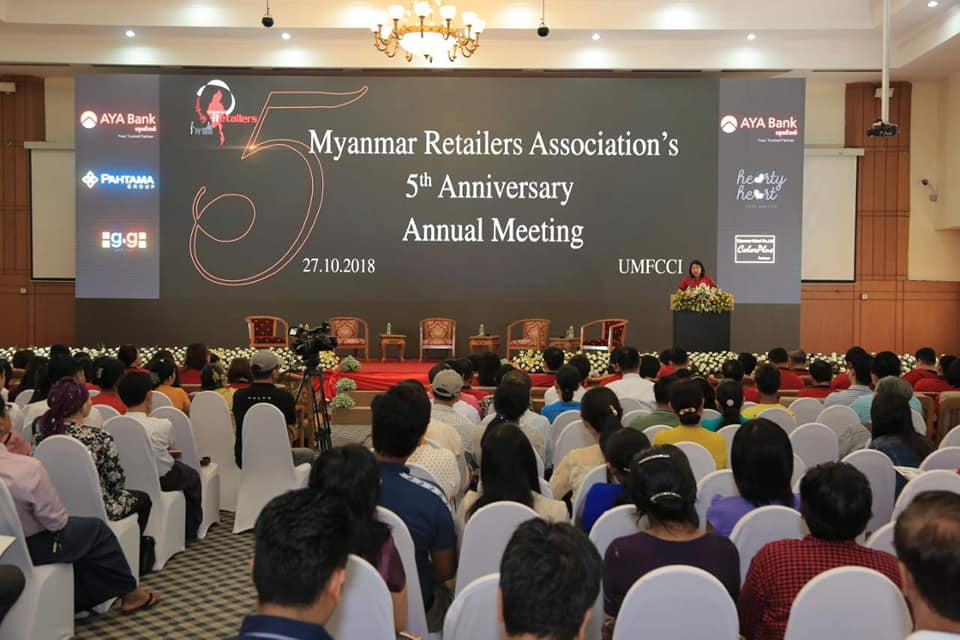 ျမန္မာႏိုင္ငံလက္လီေရာင္းခ်သူမ်ားအသင္း၏ ႏွစ္ပတ္လည္ညီလာခံကို ၂၀၁၈ခုႏွစ္၊ ေအာက္တိုဘာလ၊ (၂၇)ရက္ေန႔ နံနက္ပိုင္းမွာက်င္းပ
