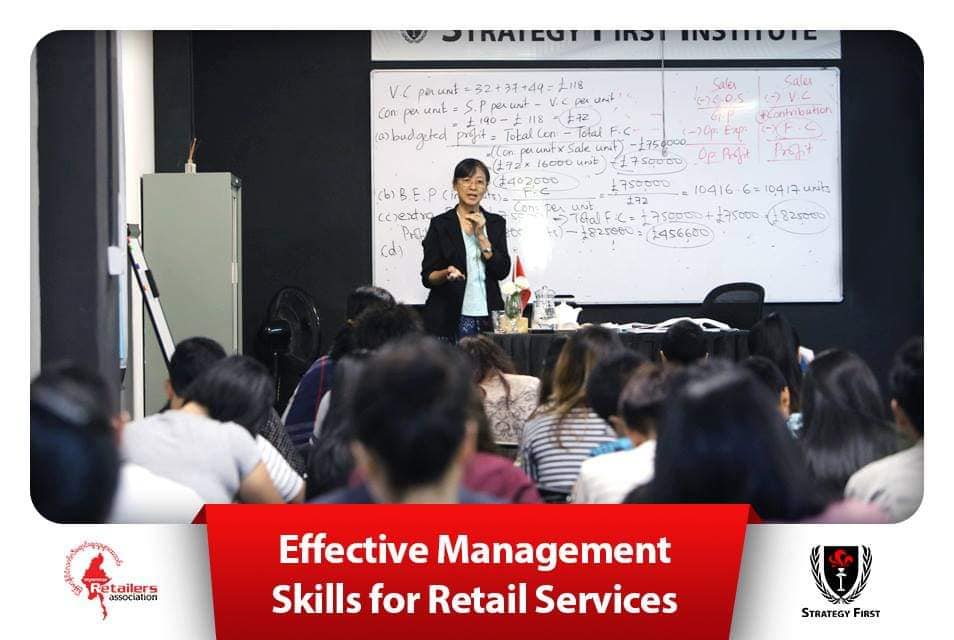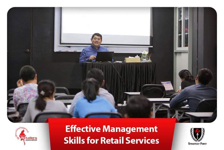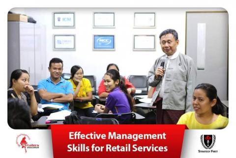 Effective Management Skills for Retail Services သင္တန္း တြင္ လက္လီလုပ္ငန္းမ်ား လုပ္ကိုင္ရာတြင္ လိုအပ္တဲ့ အသိပညာ မ်ားကို သင္ၾကားေပးမွာျဖစ္ပါသည္။ Retail လုပ္ငန္းမ်ားတြင္ အေရးပါသည့္ Cross Selling ႏွင့္ Up-Selling, Retail Operation Management, ထုတ္ကုန္ပစၥည္း ထိန္းသိမ္းစီမံျခင္း Retail လုပ္ငန္းမ်ားတြင္ က်င့္သံုးရမည့္ HR ပိုင္း၊ Customer မ်ားကို အဓိက ထား ေရာင္းခ်ျခင္းနည္းလမ္းမ်ား အပါအ၀င္ Retail sector တြင္ လုပ္ကိုင္သူမ်ားအတြက္ အက်ိဳးရွိမည့္ ေခါင္းစဥ္မ်ားကို သင္ၾကားေပး သြားမည္ျဖစ္ပါသည္။