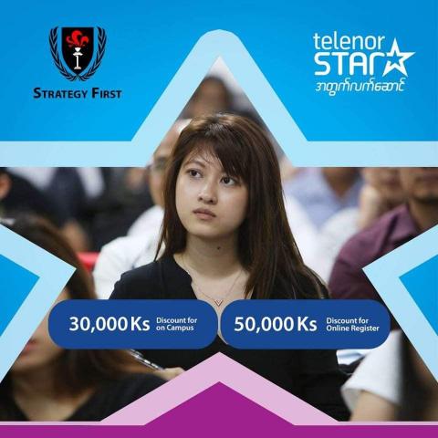Telenor Star ျဖစ္တယ္ဆုိရင္ Strategy First မွာသင္တန္းအပ္ၿပီး Discount ရယူႏိုင္ပါသည္။