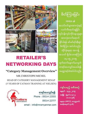 ျမန္မာနိုင္ငံ လက္လီေရာင္းခ်သူမ်ား အသင္း၏ စီစဥ္မႈျဖင့္ ျမန္မာ လက္လီလုပ္ငန္းဆုိင္ရာ ျပန္လည္သုံးသက္ခ်က္ႏွင့္ လမ္းေၾကာင္းသစ္မ်ား၊ ဆန္းသစ္သည့္ လမ္းေၾကာင္းႏွင့္ ဆုိင္းဘုတ္ ဒီဇိုင္းမ်ား၊ ဆန္းသစ္သည့္ ေစ်းဝယ္လမ္းေၾကာင္းသစ္၊ သယ္ယူပုိ႔ေဆာင္ေရးႏွင့္ ျပႆနာ အေျဖမ်ား၊ ဘားကုတ္အသုံးျပဳျခင္းႏွင့္ RFID နည္းပညာ၊ အခြန္ကိစၥ ေအာင္ျမင္ေစရန္ ေဆာ့ပ္ဝဲႏွင့္နည္းပညာက႑တြင္ ရင္းႏွီးျမဳပ္ႏွံမႈ၊ ေငြေၾကးကုိင္တြယ္မႈႏွင့္ လုံျခံဳေရး တုိးတက္လာေစရန္ မည္ကဲသုိ႔ ေဆာင္ရြက္မည္နည္း၊ အနာဂတ္ ဝင္ေငြျမင့္မားလာသည့္ လူလတ္တန္းစား စားသုံးသူ အျပဳအမႈ ေျပာင္းလဲျခင္းႏွင့္ပတ္သက္၍ ရွဳ႕ေထာင့္ အျမင္ အျပန္အလွန္ေဆြးေႏြးျခင္း စသည့္ အေၾကာင္းအရာမ်ားပါဝင္သည့္ အခမဲ့ တက္ေရာက္နိုင္သည့္ လက္လီေရာင္းဝယ္ေရး လုပ္ငန္း ေဟာေျပာပြဲ တုိ႕သည္လည္း လက္မလြတ္သင့္ေသာ ထူးျခားခ်က္ ျဖစ္ပါသည္။