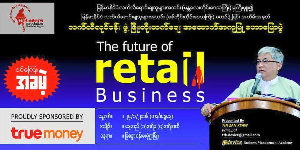 ျမန္မာႏိုင္ငံလက္လီေရာင္းခ်သူမ်ားအသင္း၊ စစ္ကိုင္းတိုင္းေဒသႀကီး အသင္းခြဲတည္ေထာင္းျခင္းႏွင့္ အသင္းခြဲ၏ အလုပ္အမႈေဆာင္ ေရြးခ်ယ္ပြဲကို ယေန႔ ၂၀၁၆ခုႏွစ္၊ ဇႏၷဝါရီလ၊ (၉)ရက္ေန႔မွာ မံုရြာၿမိဳ႕၊ ဟိုတယ္ခ်င္းတြင္း၌ က်င္းပခဲ့ပါတယ္။