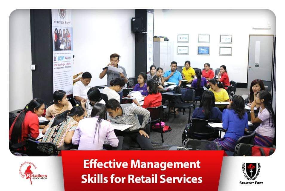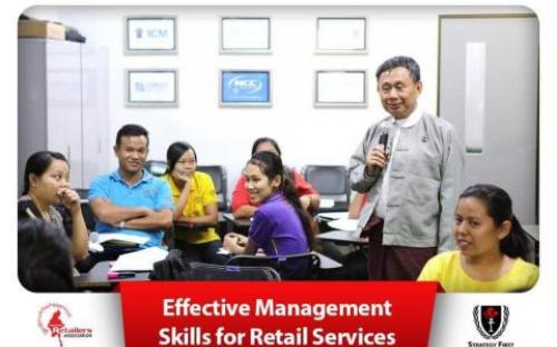 Effective Management Skills for Retail Services သင္တန္း တြင္ လက္လီလုပ္ငန္းမ်ား လုပ္ကိုင္ရာတြင္ လိုအပ္တဲ့ အသိပညာ မ်ားကို သင္ၾကားေပးမွာျဖစ္ပါသည္။ Retail လုပ္ငန္းမ်ားတြင္ အေရးပါသည့္ Cross Selling ႏွင့္ Up-Selling, Retail Operation Management, ထုတ္ကုန္ပစၥည္း ထိန္းသိမ္းစီမံျခင္း Retail လုပ္ငန္းမ်ားတြင္ က်င့္သံုးရမည့္ HR ပိုင္း၊ Customer မ်ားကို အဓိက ထား ေရာင္းခ်ျခင္းနည္းလမ္းမ်ား အပါအ၀င္ Retail sector တြင္ လုပ္ကိုင္သူမ်ားအတြက္ အက်ိဳးရွိမည့္ ေခါင္းစဥ္မ်ားကို သင္ၾကားေပး သြားမည္ျဖစ္ပါသည္။