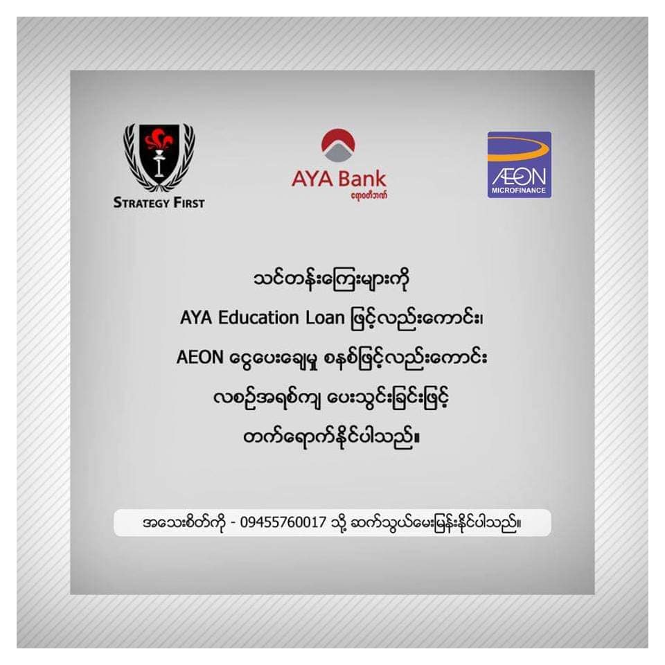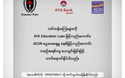 (သင္တန္းေၾကးမ်ာကုိ AEON လစဥ္အရစ္က်ေငြေပးေခ်မွဳ စနစ္ျဖင့္လည္း တက္ေရာက္ႏုိင္ပါသည္။)
