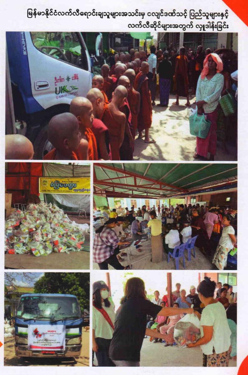 မြန်မာနိုင်ငံလက်လီရောင်းချသူများအသင်းမှ ငလျင်ဒဏ်သင့် ပြည်သူများနှင့် လက်လီဆိုင်များအတွက် လှူဒန်းခြင်း