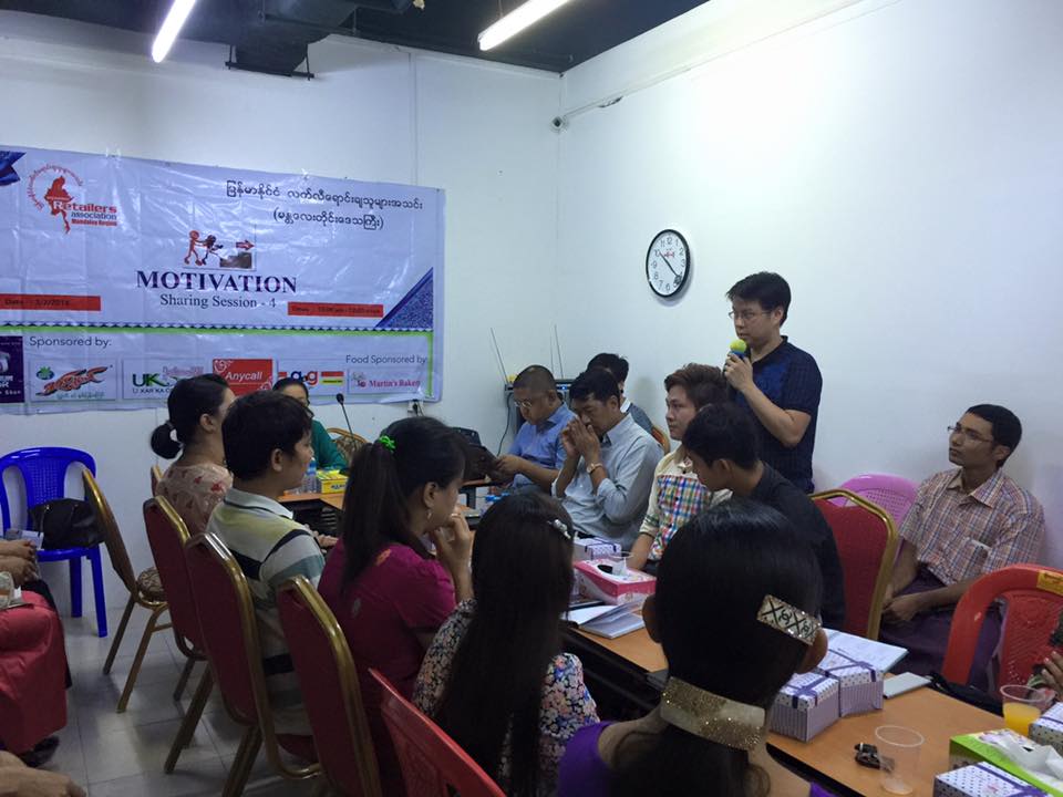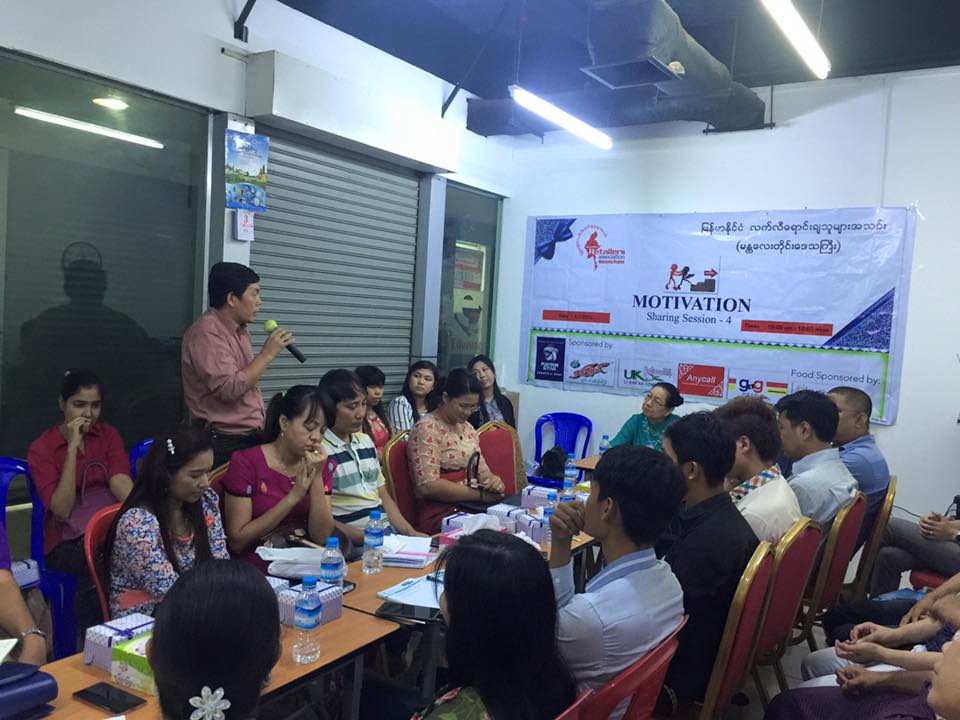 Myanmar Retailers Assocation - Mandalay Region မွ ႀကီးမွဴးျပဳလုပ္ေသာ MOTIVATION ေခါင္းစဥ္ျဖင့္ Sharing Session 4 ႀကိမ္ေျမာက္ကို ၃-၇-၂၀၁၆ ရက္ေန႕ မနက္ ၁၀ နာရီ မွ ၁၂ နာရီ ထိ အသင္းအစည္းေဝးခန္းမ၌ျပဳလုပ္၍ တက္ေရာက္လာက်ေသာ လုပ္ငန္းရွင္မ်ားမွ အျပန္အလွန္ ေဆြးေႏြးခ့ဲက်ပါသည္
